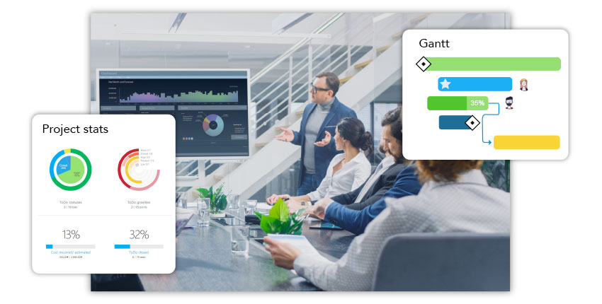 The flexibility of our solution ensures you can cover different needs, managing projects in waterfall, Agile or mixed methods in a simple and shared environment.