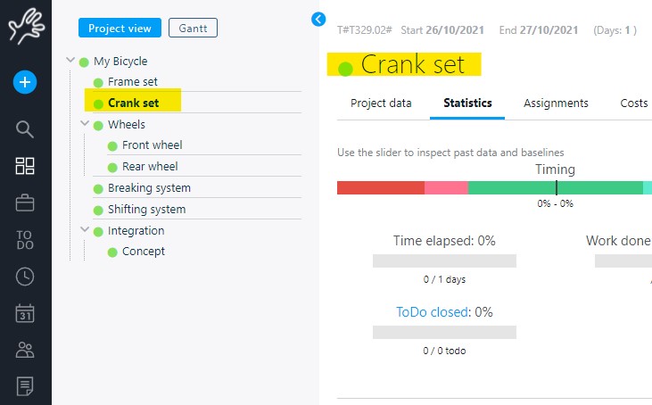 In fact, once our project has started and fed with planning data, work done, costs, documentation, our WBS enrich with information.