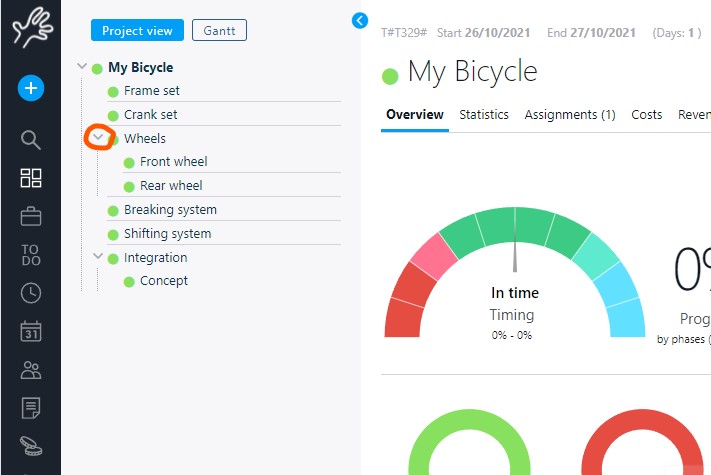 The WBS in Twproject behaves like a menu to navigate within the project,with unrivalled practicality.