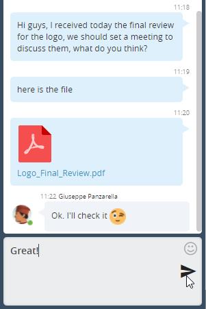 Another great feature we added in this new release is the possibility to add file in chat, images, videos, pdf, everything you need to share with your colleague, that you can then check or download.