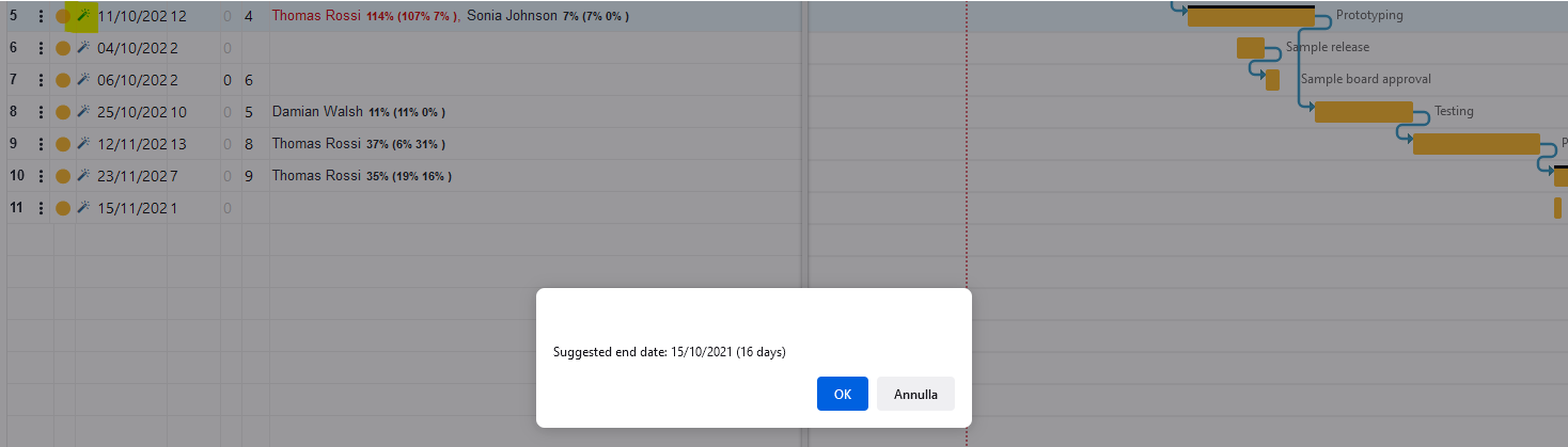 , you can activate a functionality to see all assignee on each phase with percentage capacity. Red users are overloaded.