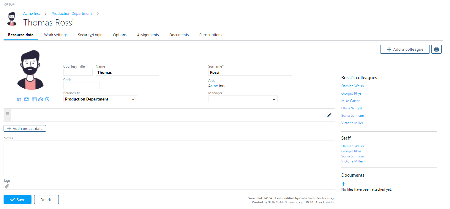 The form is similar to the “person” one, and on the sidebar you get the list of connected resources, list that contains both persons and departments.