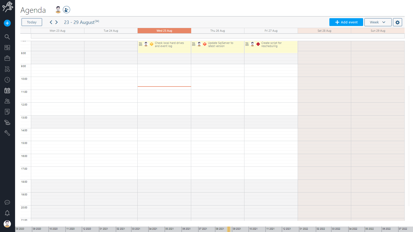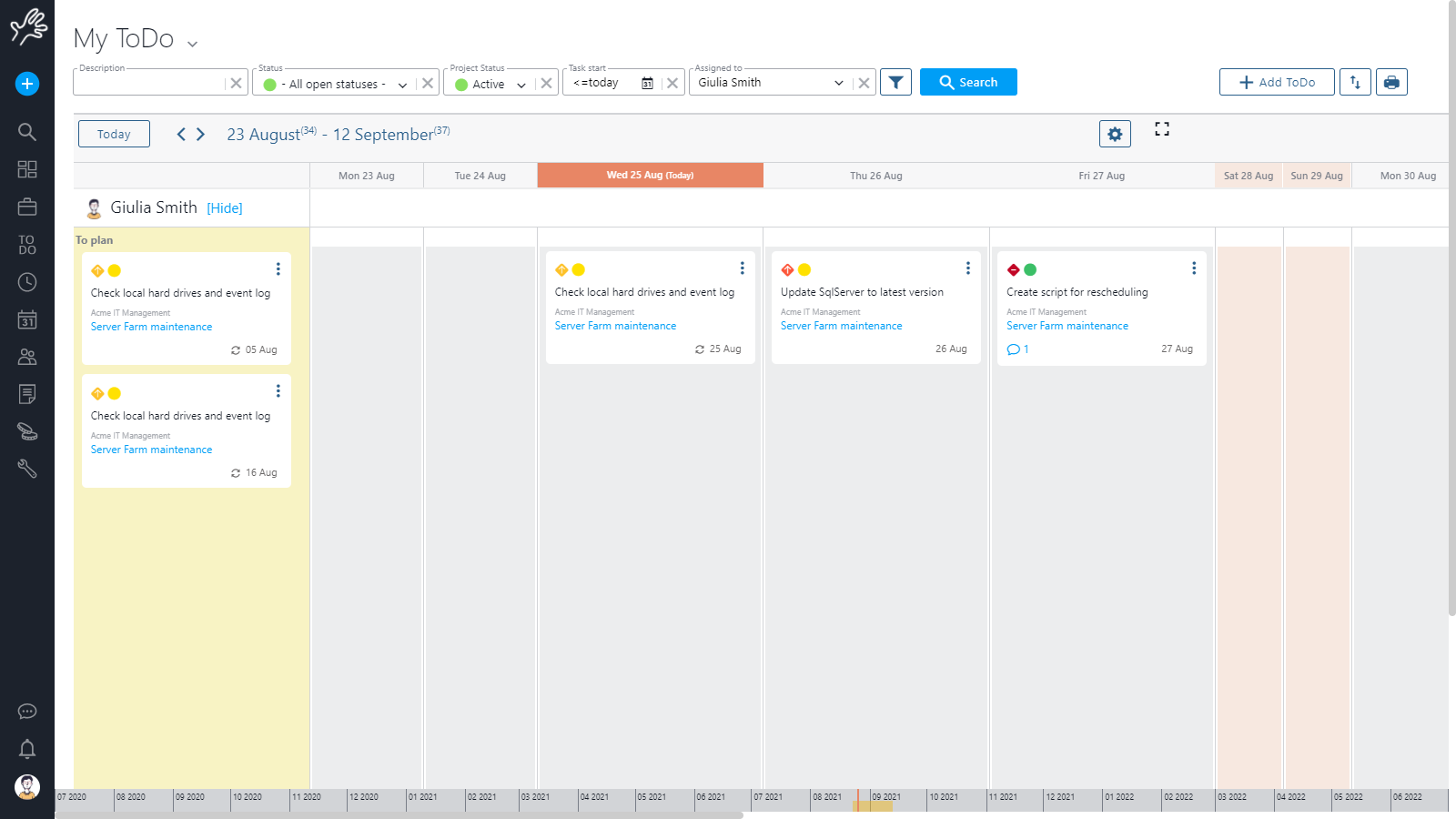 Schedule activities: This is the most straightforward use. Plan your day-by-day activity from this page having all your open ToDos under control