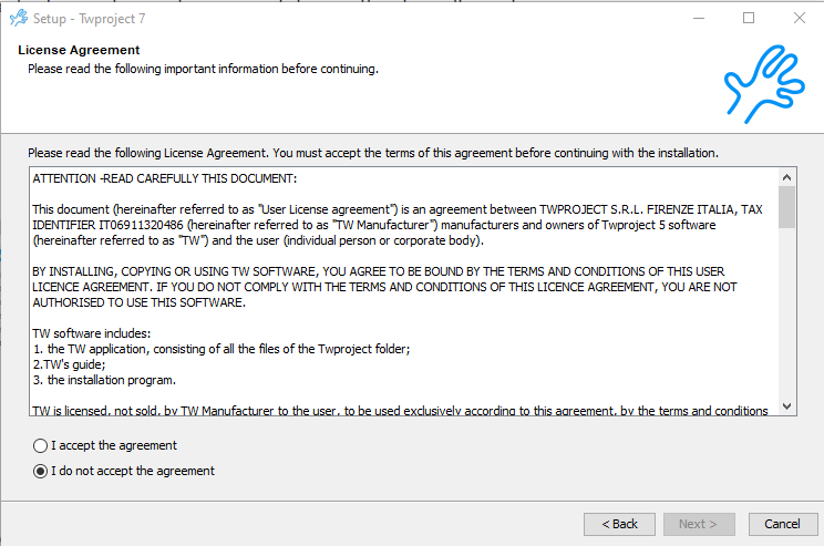 Take notes of the address; you will need to remember it the next time you will access Twproject.
