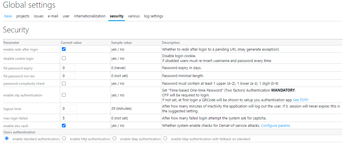 By selecting “enable ldap auth.” you will have to configure connection parameters. Go to section LDAP/Active Directory for details.