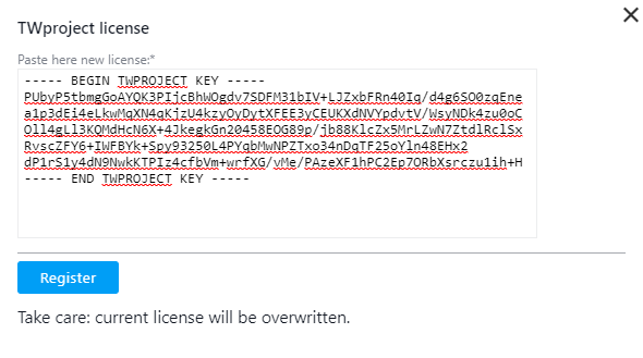 Going to “Twproject shop”, that is always open :-), you can buy or extend a license.