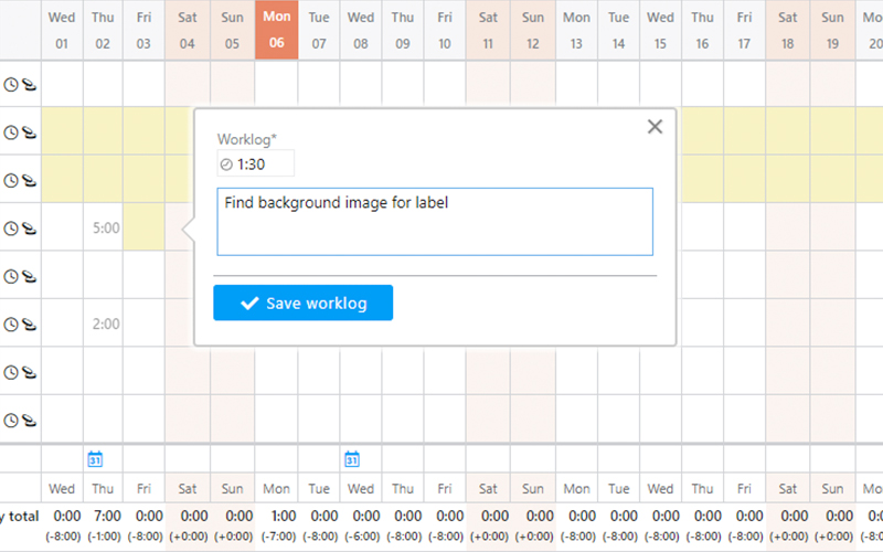 Monitor your project worklog in real time. Check estimation overflow and recalibrate values if necessary. Manage approval process with customizable timesheet statuses.