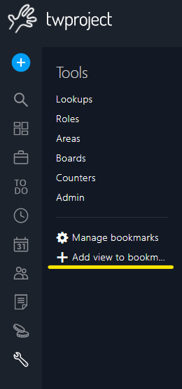A simple way to get back to a common used page is to record a bookmark. Twproject has a refined tool to manage bookmarks.