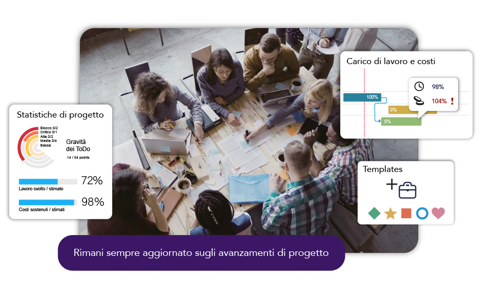 Sfrutta template e custom worflow per sedimentare le tue best practices. Con Twproject potrai aiutare il tuo team a lavorare in modo più efficace. Twproject ti darà tutti gli strumenti per gestire il tuo progetto in modo agile.