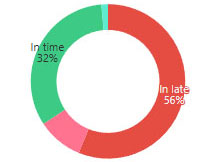 - Phases timing: offers the percentage of project sub-phase timings, which have a range of punctuality.