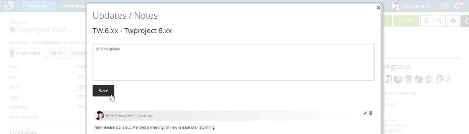 La principale novità di questo nuovo rilascio sono gli aggiornamenti sui task. Quelli che erano in precedenza chiamati task logs, su cui venivano registrati cambi di date e stato, sono stati convertiti in questo oggetto più ricco che vi permetterà di salvare anche note, commenti e appunto aggiornamenti del task. Grazie a questa nuova funzionalità sarà ancora più facile seguire e mantenere il controllo sull’avanzamento dei vostri progetti.